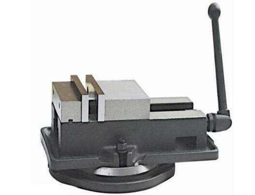 而固定鉗身連接在底座上,底座通過螺栓固定在鉗工臺上。臺鉗在安裝到鉗工臺上有固定鉗身不能自由旋轉和能自由旋轉的兩種類型,是能自由旋轉的類型,旋轉鉗口到合適的位置能通過鎖緊手柄將臺鉗位置鎖定。